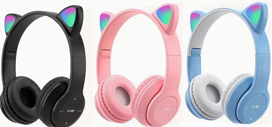 Auriculares inalámbricos con orejas de gato de anime, plegables, con luz LED. Bonitos, excelente sonido, con un diseño único.