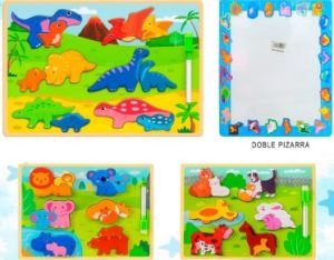 Juego didáctico, animales con pizarra de doble uso de madera, ideal para los niños y niñas.