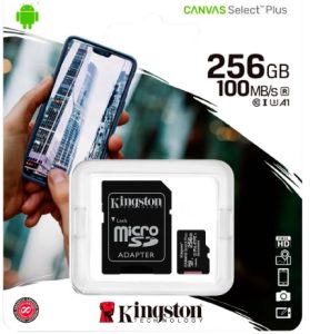 Micro SD Kingston 256 Gb, son compatibles con dispositivos Android, alta calidad y gran velocidad al momento de guardar los archivos, ideal para cámaras de seguridad, para uso escolar y el de oficina.